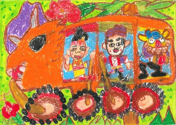 ☆優秀賞「バチをたたいてすすめ!トリケラトプスバス!」