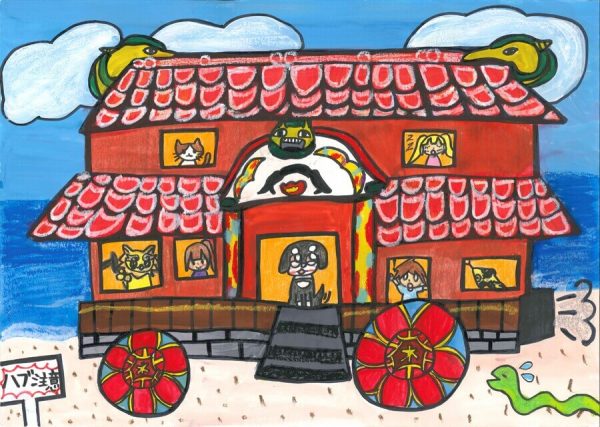 バスのタイヤが花笠になっているところやハブを登場させたところと看板がユニークです。